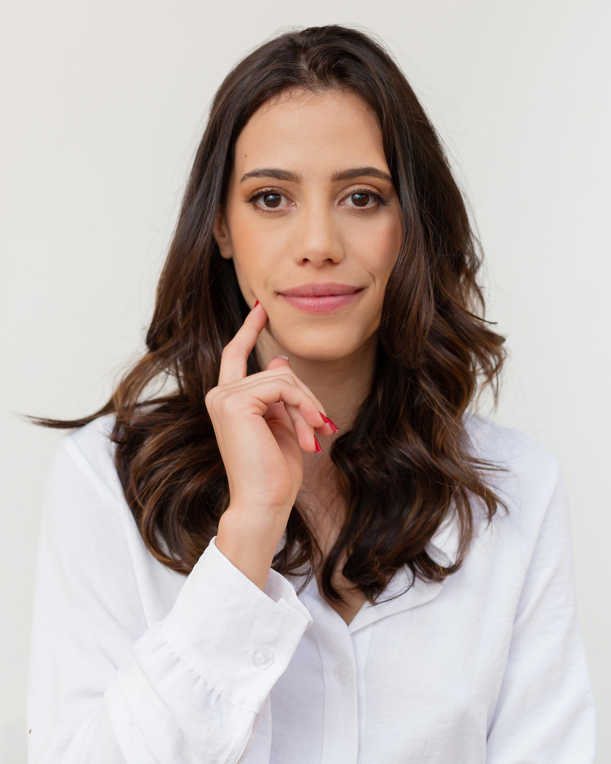 Ana é atriz, roteirista e acaba de abrir sua empresa de marketing médico. Para esta nova fase pensamos em uma linha mais comercial e com uma aparência mais focada, buscamos cores neutras e um estilo mais clean.